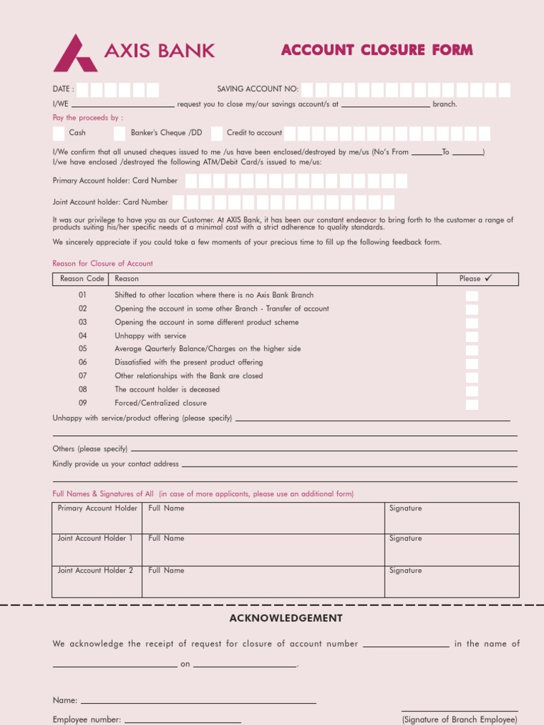 Sb Account Closure Form Axis Bank Cheque Banks